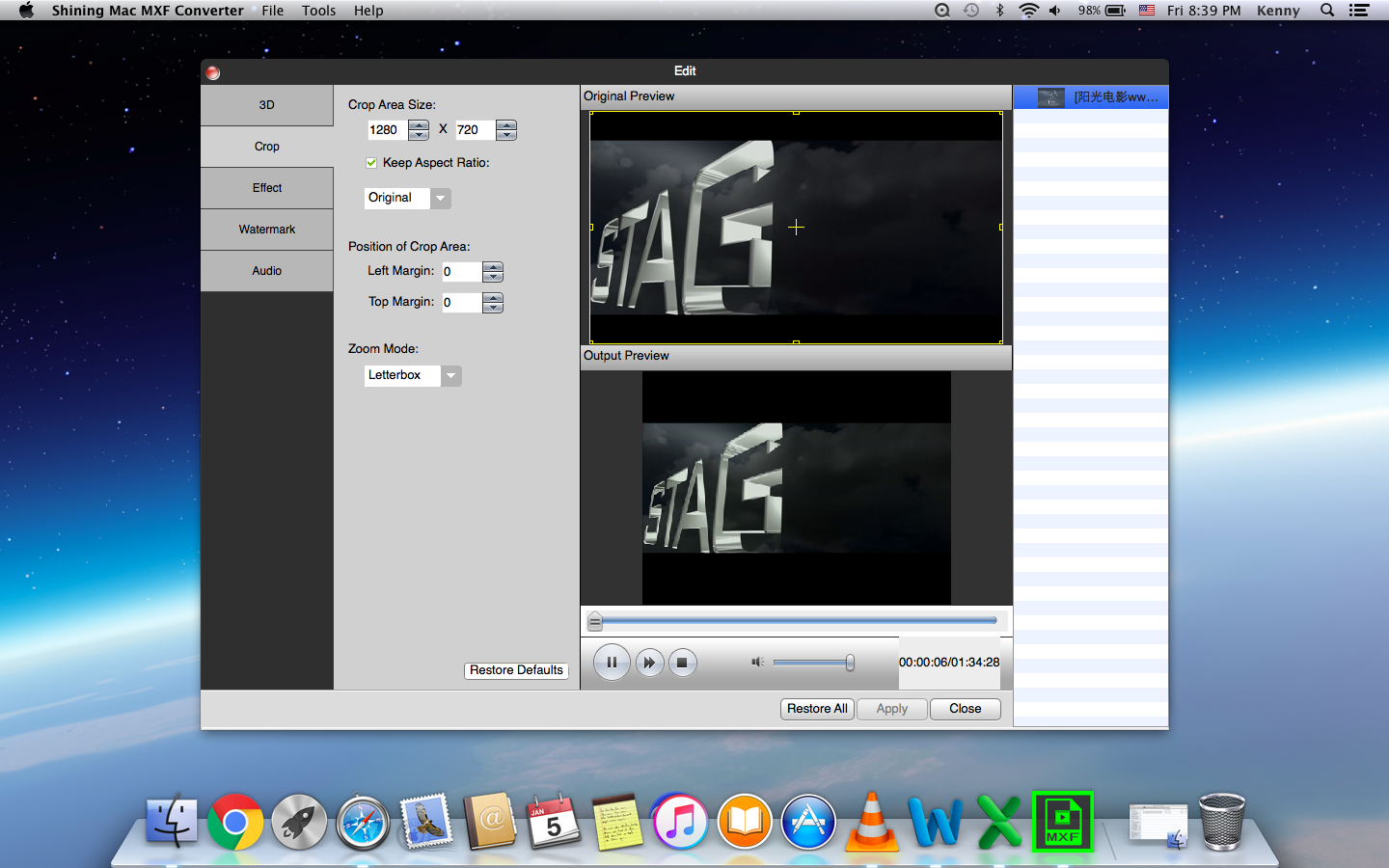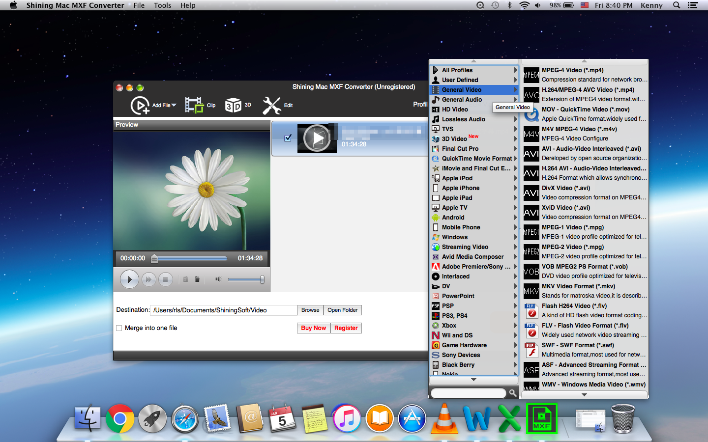 It's easy to convert MXF Video to any other video like AVI, MP4, MOV (QuickTime), WMV, MKV, MPEG on Mac with Shining Mac MXF Converter.